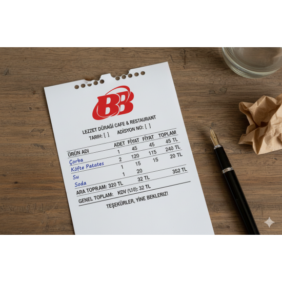 Logo ve firma bilgileriyle hazırlanan adisyonlar, işletmenizin profesyonel algısını güçlendirir.